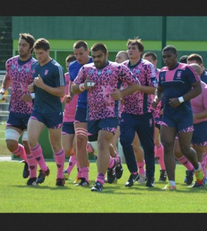 - Maillots roses : Zidane, des rugbymen à l'entraînement, K.Benzema et G.Bale du Real Madrid